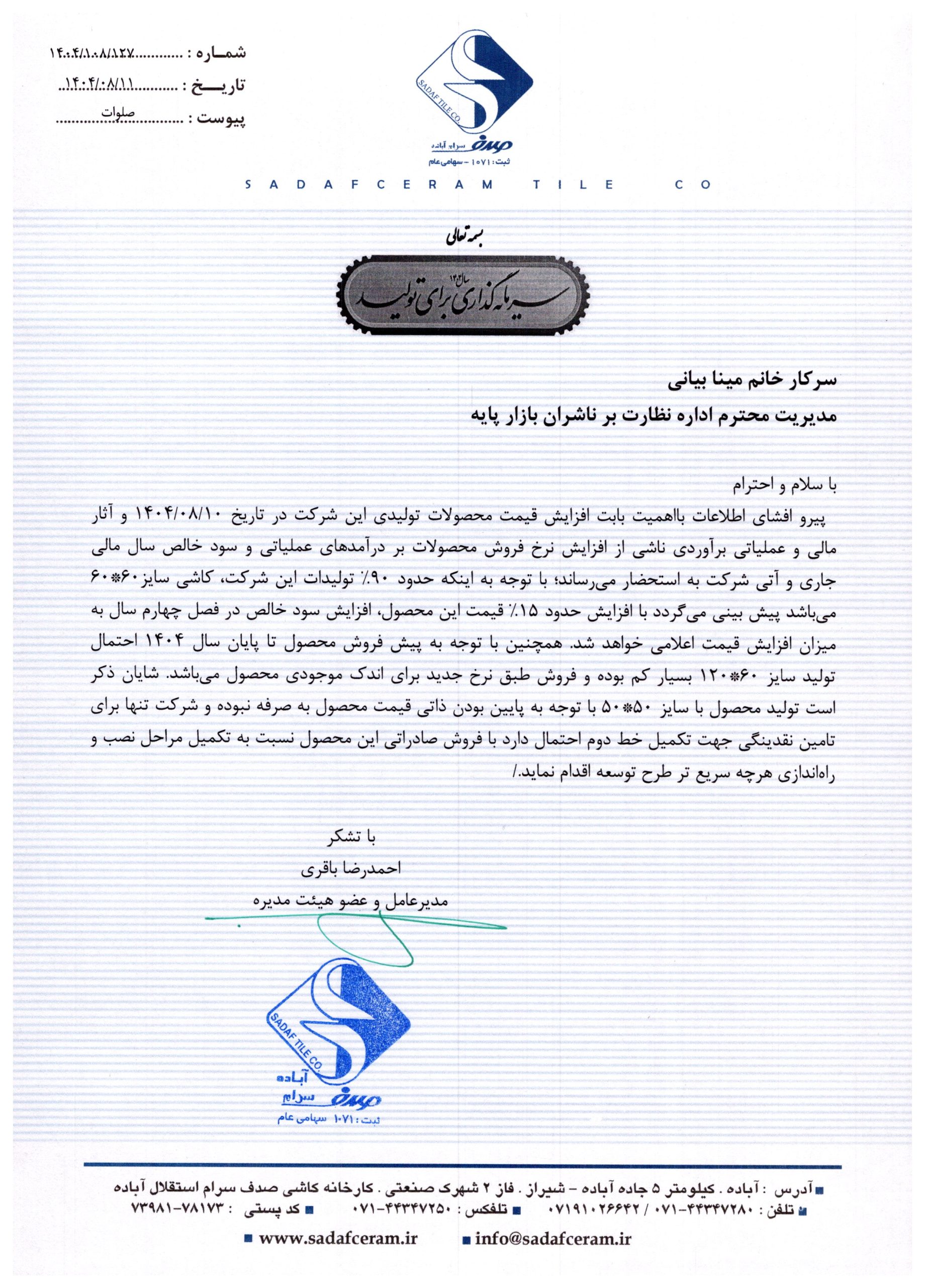 توضيحات تکميلي در خصوص آثار مالي و عملياتي برآوردي ناشي از افزايش قيمت محصولات مورخ 1404/08/10