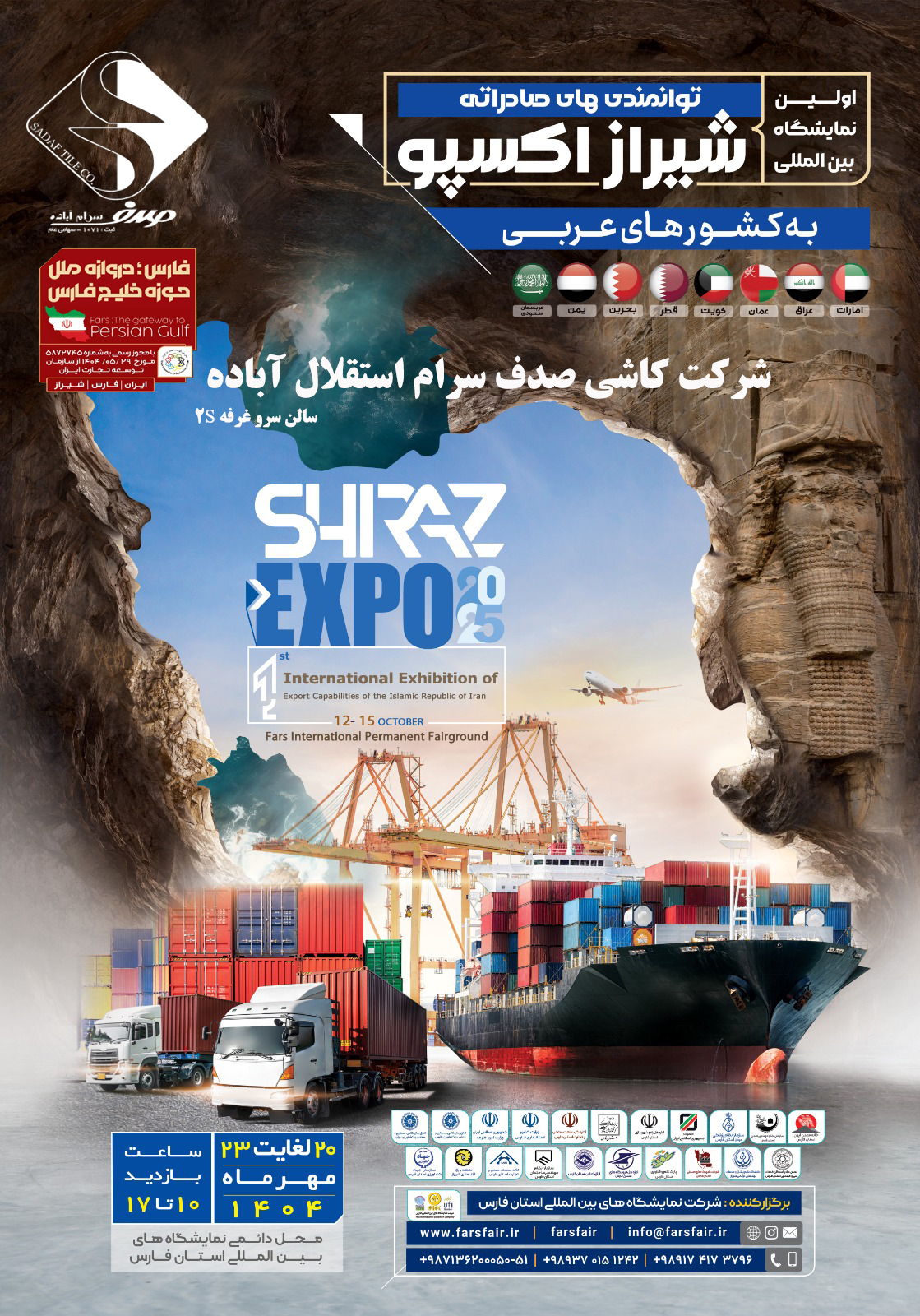 حضور شرکت کاشی صدف سرام استقلال آباده در اولین نمایشگاه بین المللی توانمندیهای صادراتی جمهوری اسلامی ایران به کشورهای عربی در شیراز